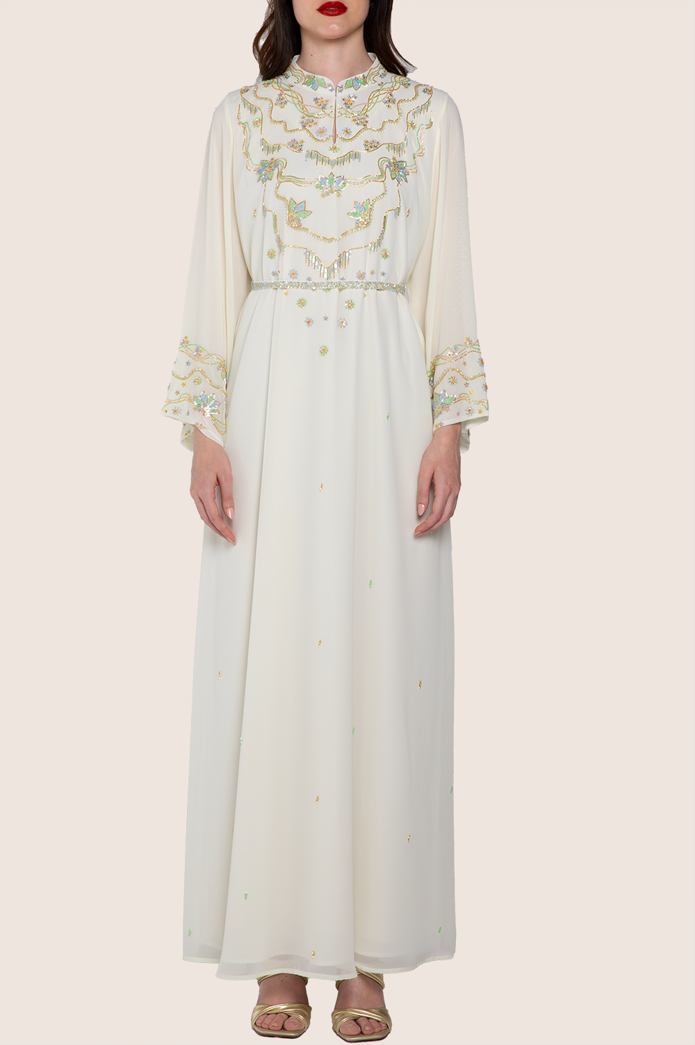 Baby Breath A-Line Kaftan with Floral Embellishments