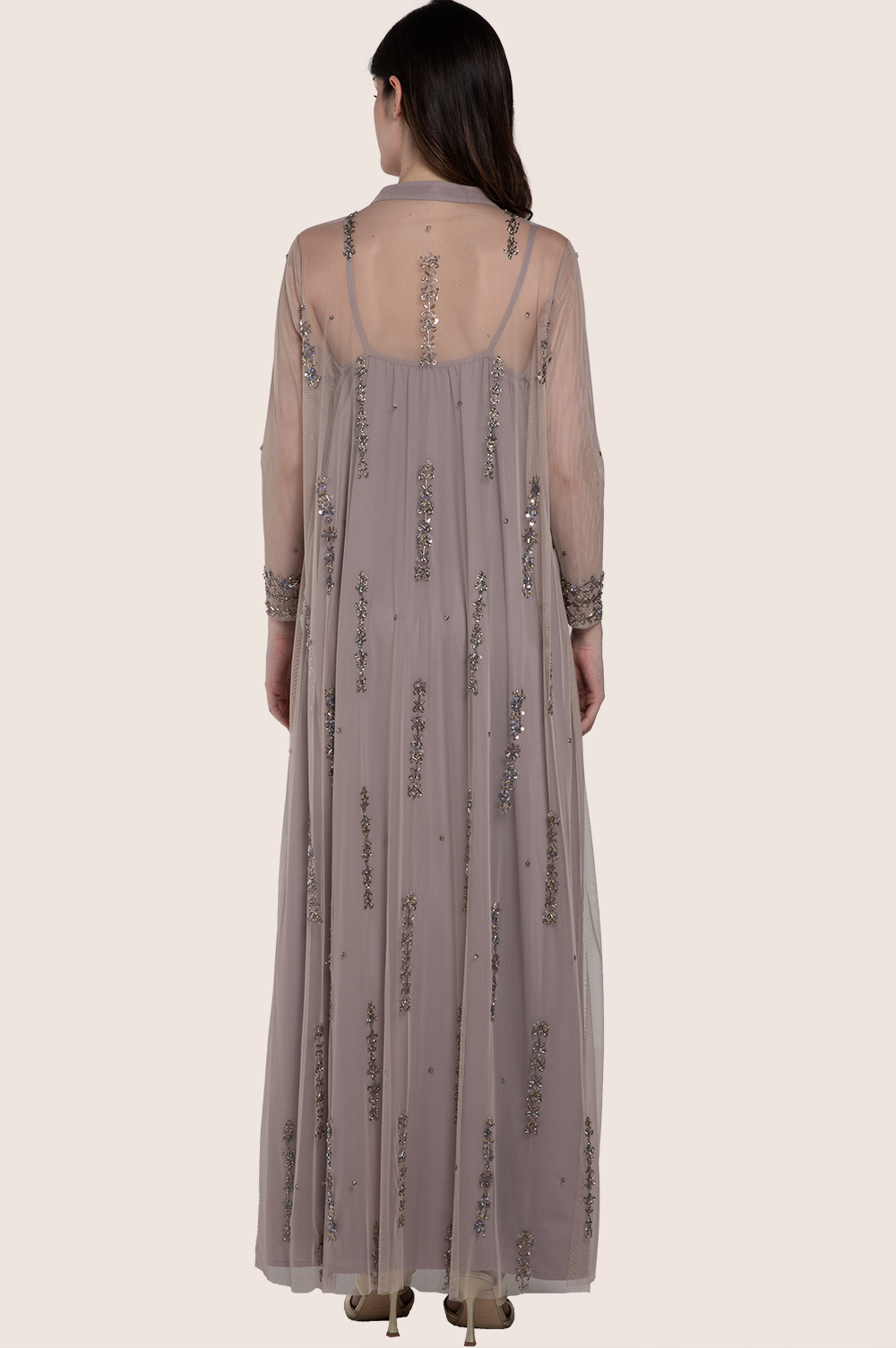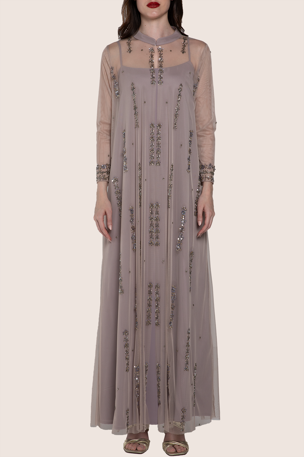 Design : Nacreous Clouds A-Line kaftan Beaded Handwork, Inner crepe Separated from Tulle